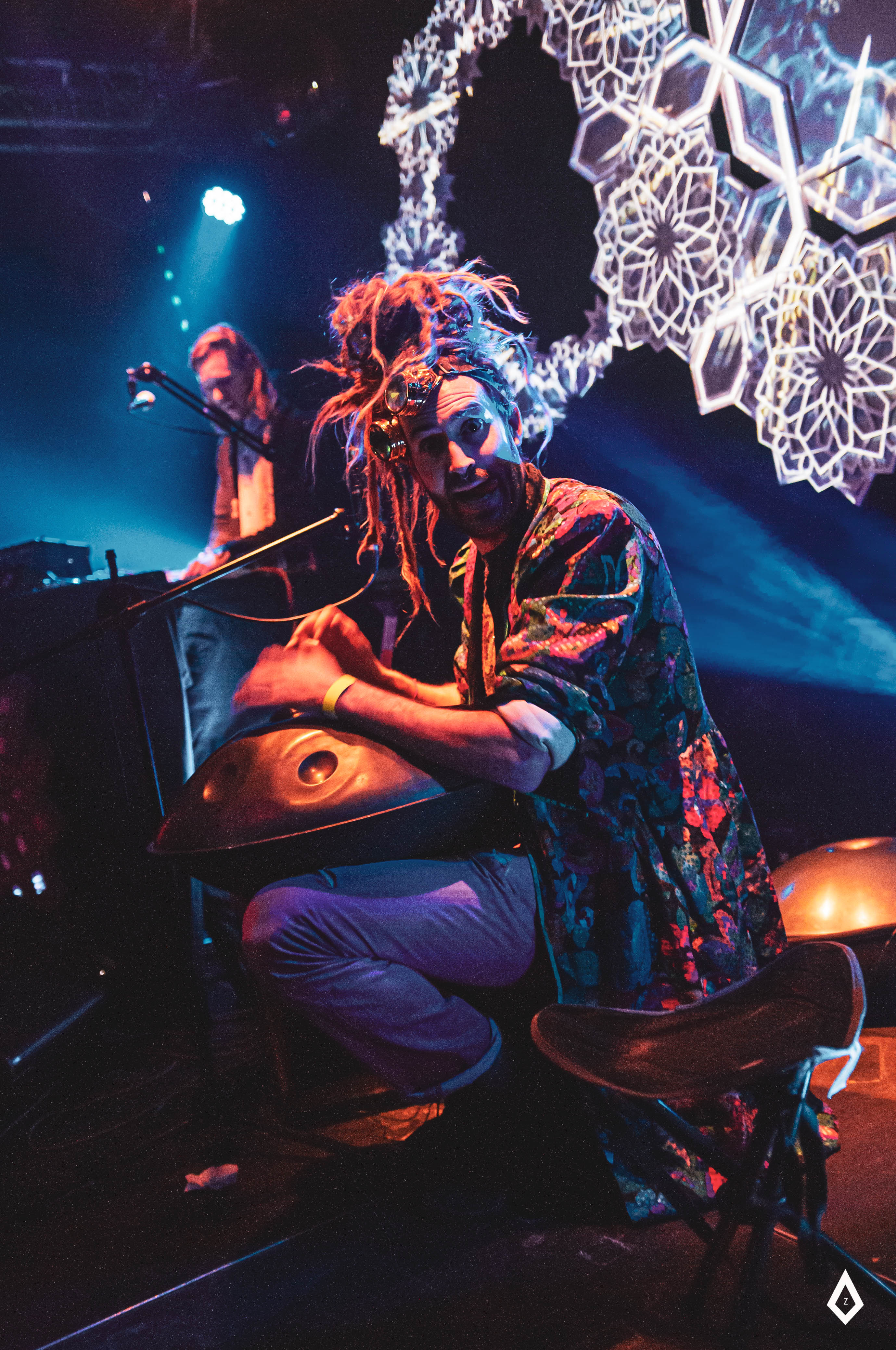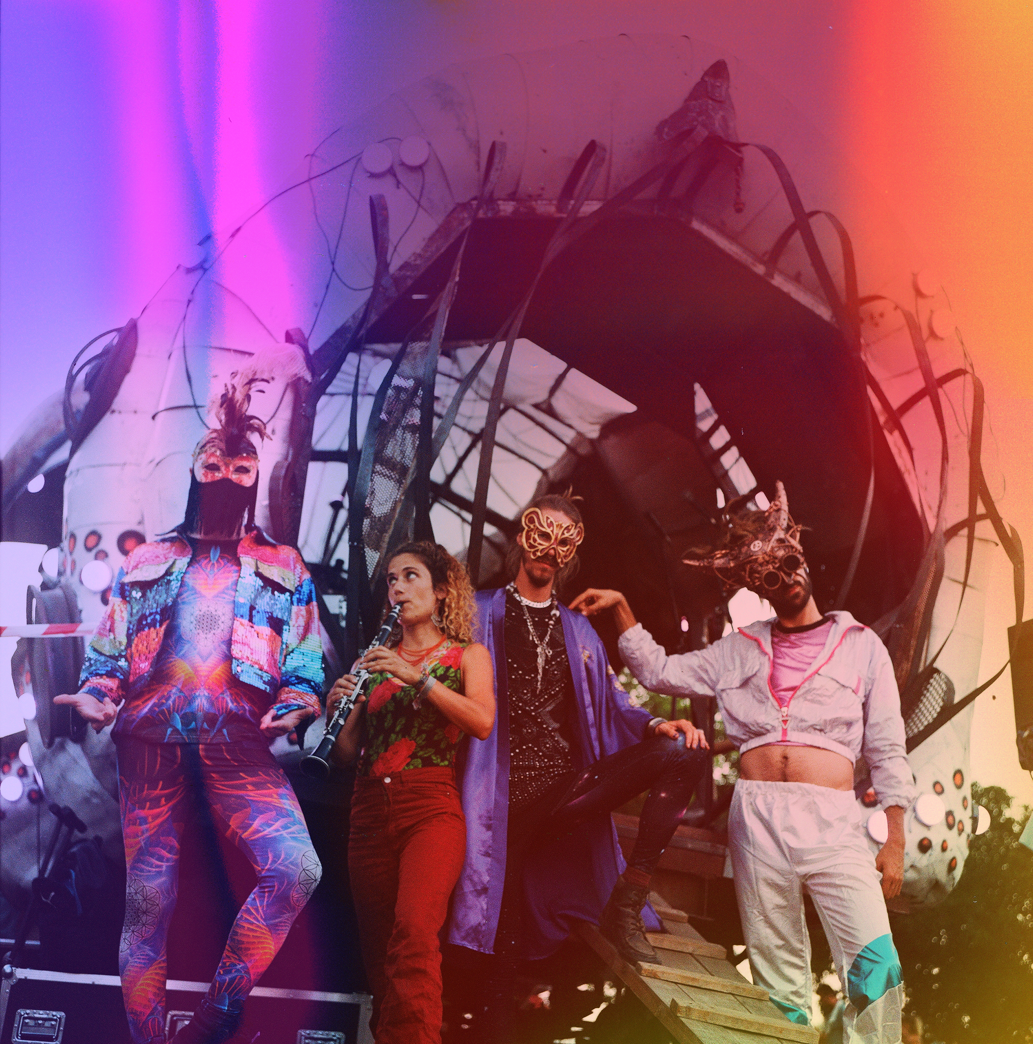 Led by Pr. Galacticus (machinery) and Captn. Friktus (handpans, multi-instruments), the atypical crew creates its own galaxy in constant evolution. During travels around Europe, Russia, India, China and Latin America, they met number of artists/travellers that they bring on stage creating a unique experience to each appearance. A journey between organic human vibrations, cosmic instruments and mechanical oscillations of the machines, Cosmyte is a real musical android.