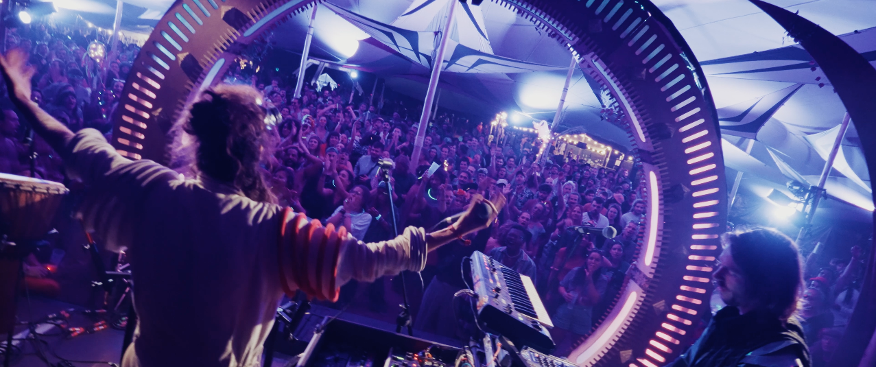 Mené par le Pr. Galacticus (machines) et le Cptn. Friktus (handpans & multi-instruments), l’équipage atypique créé sa propre galaxie en constante évolution. Lors d’expéditions en Europe, Russie, Inde, Chine et Amérique Latine, la rencontre avec d’autres artistes voyageurs qu’ils embarquent sur scène crée une expérience unique à chaque apparition. Un voyage entre vibrations organiques humaines, instruments cosmiques et oscillations de machines mécaniques, Cosmyte est un véritable androïde musical.